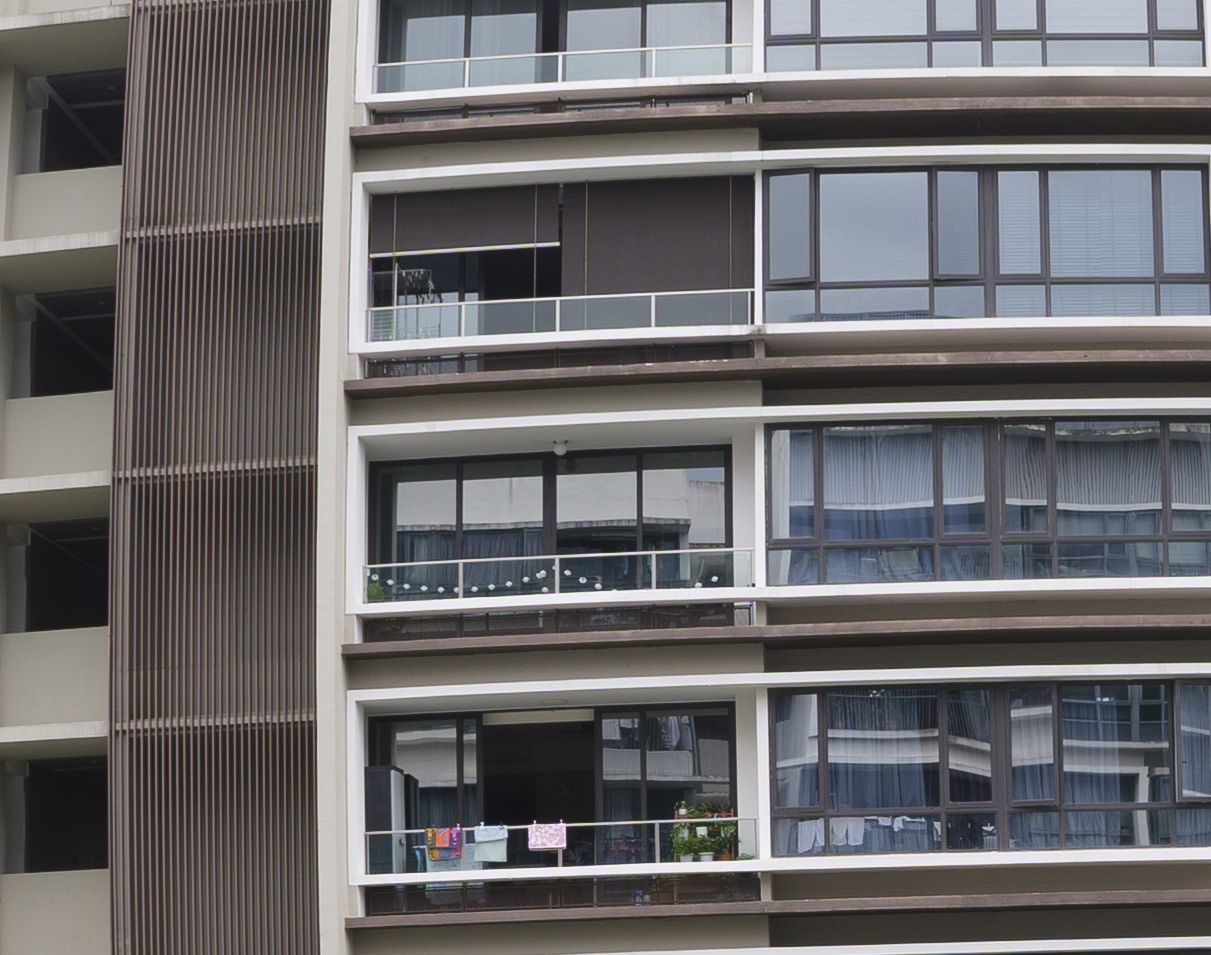 But the center is rather sharp. At 11mm, the lens is very easy to focus via focus assist. We need to zoom in to tweak the focus to ensure critical sharpness. Not bad. Here is a 1204 pixel crop from near the center. Barrel distortion is obvious, this is a fisheye lens. Not super sharp, but not bad, especially if reduced in scale in PS.