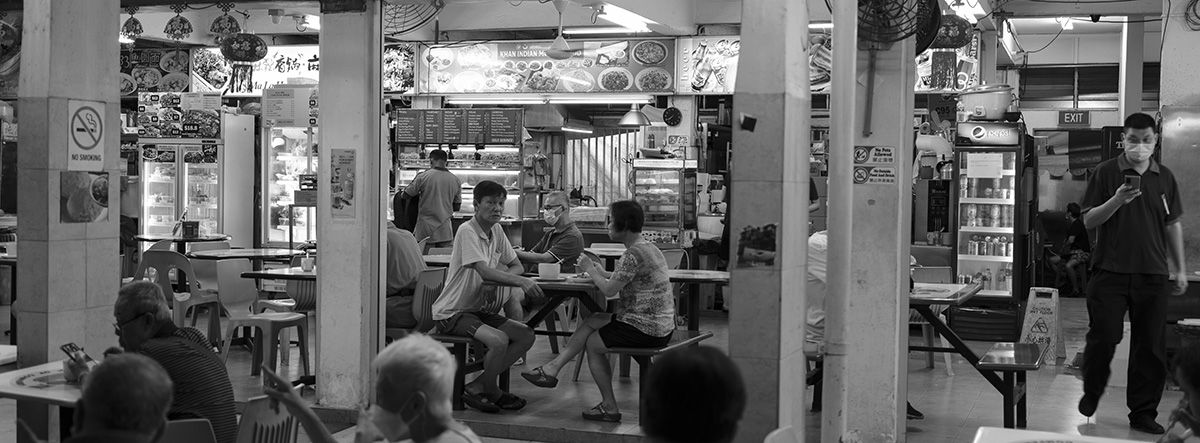 Back to the walkabout series of scenes in Singapore, and back to black and white images. All images taken after dinner at the Whampoa Food Centre. Fujifilm GFX 50S II with GF50, using Acros film simulation and shot in x-pan 65-24 aspect ratio.
